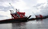 REPUBLIKA.CO.ID,JAYAPURA -- Foto aerial pembangunan proyek jembatan Holtekamp di Jayapura, Papua, Senin (13/11).