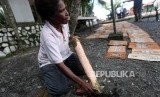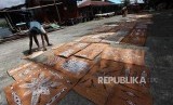 REPUBLIKA.CO.ID, JAYAPURA -- Warga menjemur lukisan kulit kayu di Kampung Asei Besar, Distrik Sentani Timur, Kabupaten Jayapura, Papua, Senin (13/11).