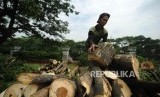 REPUBLIKA.CO.ID, JAKARTA -- Petugas Dinas Pertamanan dan Pemakaman melakukan evakuasi pohon tumbang di Jalan Sultan Agung, Jakarta Selatan, Selasa (14/11).