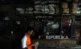 Aksi Mogok Dagang. Pedagang melintas di samping gudang penyimpanan barang saat aksi mogok dagang di Pasar Induk Tanah Tinggi, Tangerang, Selasa (14/11). (FOTO : Republika/Putra M. Akbar)