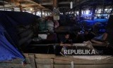 Aksi Mogok Dagang. Pedagang berdiam diri di lapak tempat berjualan imbas aksi mogok dagang di Pasar Induk Tanah Tinggi, Tangerang, Selasa (14/11). (FOTO : Republika/Putra M. Akbar)
