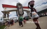 REPUBLIKA.CO.ID, JAYAPURA -- Sejumlah warga Negara Papua New Guinea melintas di Pos Lintas Batas Negara (PLBN) Skouw, Jayapura, Papua, Selasa (14/11).