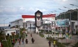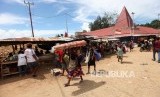 Sejumlah warga Negara Papua New Guinea berbelanja di Pasar Kasawan Pos Lintas Batas Negara Skouw, Jayapura, Papua, Selasa (14/11). (FOTO : Republika/Mahmud Muhyidin)