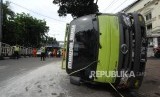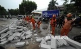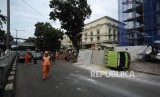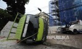 REPUBLIKA.CO.ID, JAKARTA -- Sebuah truk dengan nomor kendaraan A 8717 FE ambles di jalan Dr . Saharjo, Jakarta Selatan, Rabu (15/11). Truk bermuatan bata bata tersebut ambles akibat tanah bekas galian tidak dapat menahan beban berat truk.