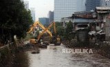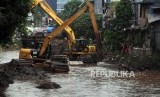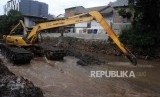 REPUBLIKA.CO.ID, JAKARTA -- Pekerja mengeruk Kali Krukut menggunakan alat berat di Kawasan Kebayoran Baru, Jakarta Selatan, Rabu (15/11).