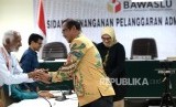 Sidang lanjutan pemeriksaan dugaan pelanggaran pendaftaran calon peserta Pemilu 2019 di Kantor Bawaslu, Thamrin, Jakarta Pusat, Senin (13/11). Dalam sidang tersebut terungkap bahwa sipol belum terdaftar di Kemenkominfo. (FOTO : Republika/Dian Erika Nugraheny)