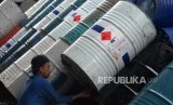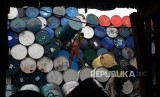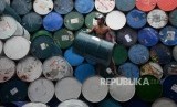 REPUBLIKA.CO.ID, JAKARTA -- Pekerja menata drum bekas di tempat penjualan drum bekas di kawasan Kalimalang, Bekasi, Jawa Barat, Kamis (16/11).