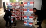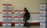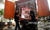 REPUBLIKA.CO.ID, JAKARTA -- Karyawan KPU membawa kontainer yang berisi berkas parpol usai dilakukanya penenlitian administrasi parpol peserta pemilu di Kantor KPU Pusat, Jakarta, Kamis (16/11).