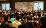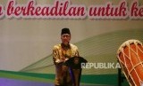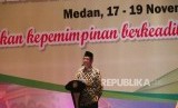 Ketua Presidium Mahfud MD menyampaikan kata sambutannya pada acara pembukaan Musyawarah Nasional ke 10 Korps Alumni Himpunan Mahasiswa Islam (KAHMI) di Medan, Sumatera Utara, Jumat (17/11). (FOTO : Darmawan / Republika)