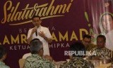Ketua Badan Pengurus Pusat (BPP) Himpunan Pengusaha KAHMI (HIPKA) Kamrussamad memberikan penjelasan kepada pers usai acara pembukaan Munas ke-X Korps Alumni KAHMI di Medan, Sumatera Utara, Jumat (17/11). (FOTO : Republika/Darmawan)