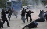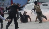 Teroris menyerang dan menyandera delegasi negara asing pada konferensi tingkat menteri saat simulasi penanggulangan teror di Bandara Ngurah Rai, Bali, Jumat (17/11). (FOTO : Antara/Nyoman Budhiana)