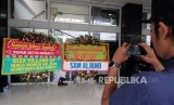 Jurnalis memotret bunga karangan yang dikirim untuk Ketua DPR RI Setya Novanto yang sedang dirawat di RSCM Kencana, Jakarta, Sabtu (18/11). (FOTO : Republika/Putra M. Akbar)