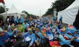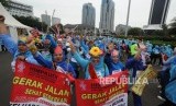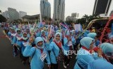 REPUBLIKA.CO.ID, JAKARTA -- Ribuan guru yang tergabung dalam Himpunan Pendidik dan Tenaga Kependidikan Anak Usia Dini (HIMPAUDI) DKI Jakarta mengikuti kegiatan gerak jalan bersama yang bertajuk Gerak Jalan Pahlawan Emas, yang oleh dibuka oleh Gubernur DKI Jakarta Anies Baswedan di Silang Monas Jakarta, Ahad (19/10).