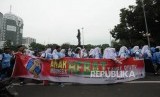 REPUBLIKA.CO.ID, JAKARTA -- Ratusan pelajar melakukan kampanye bahaya merokok di area hari bebas kendaraan bermotor di kawasan Jalan Thamrin, Jakarta Pusat, Ahad (19/11).