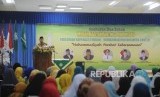 Ketua Umum PP Muhammadiyah Haedar Nashir memberikan sambutan dalam acara Syukuran Dua Tahun Muhammadiyah Ranting Pondok Labu,Jakarta, Ahad (19/11). (FOTO : Republika/Iman Firmansyah)