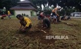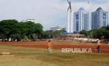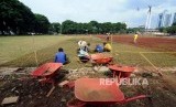 REPUBLIKA.CO.ID, JAKARTA -- Pekerja menanam rumput baru di Lapangan banteng, Sawah Besar, Jakarta Pusat, Senin (20/11). Penanaman rumput tersebut merupakan salah satu bagian dari program revitalisasi Lapangan Banteng.