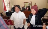 Wakil Ketua DPRD Kabupaten Bantaeng, Andi Alim Bahri (kiri) didampingi penasehat hukumnya usai mengikuti pembacaan putusan di Pengadilan Negeri Tipikor Makassar, Sulawesi Selatan, Kamis (20/11). Alim terdakwa kasus korupsi dana pelatihan anggaran aspirasi Bappeda Bantaeng senilai Rp129 juta, divonis 1 tahun penjara subsider 1 bulan, lebih rendah dari tuntutan Jaksa Penuntut Umum (JPU) seberat 2,6 tahun. (FOTO : Darwin Fatir/Antara)