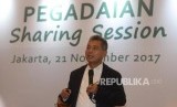Direktur Utama Pegadaian Sunarso memberikan pemaparan tentang Pegadaian saat acara 'sharing session' di Jakarta, Selasa (21/11). (FOTO : Yasin Habibi/ Republika)