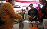 Menteri Koordinator Bidang PMK Puan Maharani bersama Kepala Badan POM Penny K Lukito meninjau salah satu stan pameran Pasar Aman Sehat seusai membuka pencanangan Gerakan Masyarakat Hidup Sehat Sadar Pangan Aman (Germas Sapa) di Taman Mini Indonesia Indah, Jakarta, Kamis (23/11). (FOTO : Mahmud Muhyidin/Republika)