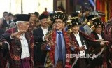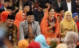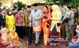 Putri Presiden Joko Widodo, Kahiyang Ayu (depan, kedua kanan) bersama suaminya Bobby Afif Nasution mengikuti ritual adat "Mangalo-alo Mora" pada ngunduh mantu resepsi pernikahannya di Medan, Sumatera Utara, Jumat (24/11). Mangalo-alo Mora merupakan salah satu rangkaian prosesi adat Batak Mandailing dalam rangkaian acara ngunduh mantu putri Presiden Joko Widodo, Kahiyang Ayu dan suaminya Bobby Nasution. (FOTO : Septianda Perdana/ANTARA)