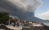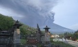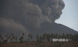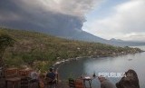 REPUBLIKA.CO.ID,KARANGASEM -- Asap dan abu vulkanis menyembur dari kawah Gunung Agung pascaletusan freatik kedua, terpantau dari Desa Culik, Karangasem, Bali, Ahad (26/11).