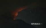 Gunung Agung mengeluarkannya asap berwarna kemerahan terlihat dari Desa Glumpang, Karangasem, Bali, Ahad (26/11) dini hari. (FOTO : Antara/Fikri Yusuf)