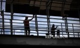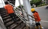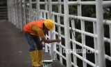 REPUBLIKA.CO.ID, JAKARTA -- Pekerja melakukan pengecatan ulang di sejumlah bagian dari Jembatan Penyeberangan Orang (JPO) di kawasan Kramat Raya, Jakarta, Ahad (26/11).