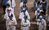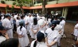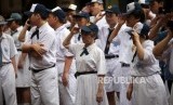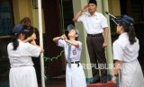 REPUBLIKA.CO.ID, JAKARTA -- Menteri Pendidikan dan Kebudayaan Muhadjir Effendy memimpin apel pagi di SLB Tri Asih, Jakarta, Senin (27/11). Apel yang diikuti seluruh siswa SLB kelompok terapi hingga SMK tersebut merupakan dalam rangka memperingati Hari Guru Nasional 2017.