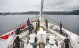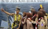 REPUBLIKA.CO.ID, SABANG -- Sejumlah prajurit mengamati daratan Pulau Weh sesaat sebelum KRI Bima Suci bersandar di Sabang, Aceh, Selasa (28/11). KRI Bima Suci berada di Sabang selama lima hari dalam rangka mengkuti kegiatan Sail Sabang.