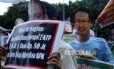 Pengunjuk rasa menuntut KPK untuk melanjutkan kasus KTP elektronik yang diduga melibatkan beberapa sejumlah pejabat di Indonesia.