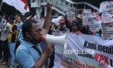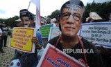 Unjuk Rasa. Komando aksi mahasiswa dan pemuda anti Korupsi (KOMPAK) melakukan unjuk rasa di depan kantor Komisi Pemberantasan Korupsi(KPK), Kuningan, Jakarta, Rabu (29/11). (FOTO : Republika/Iman Firmansyah)