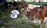 REPUBLIKA.CO.ID, KARANGASEM -- Petugas mendata hewan ternak pengungsi di penampungan hewan ternak pengungsi, Rendang, Karangasem, Bali, Jumat (1/12).
