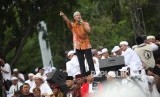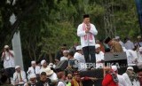 Wakil Ketua DPR Fahri Hamzah memberikan tausiyah kepada ribuan umat Islam saat mengikuti reuni 212 di Monumen Nasional, Jakarta, Sabtu (2/12). (FOTO : Republika/Mahmud Muhyidin)