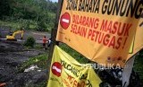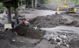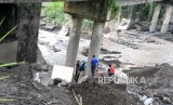 Pembuatan Alur Lahar Dingin. Petugas memeriksa pondasi Sungai Yah Se, Rendang, Karangasem, Bali, Sabtu (2/12). (FOTO : Republika/ Wihdan)