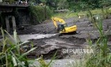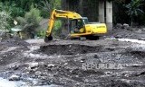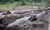 Pembuatan Alur Lahar Dingin. Alat berat mengeruk lahar dingin di Sungai Yah Se, Rendang, Karangasem, Bali, Sabtu (2/12). (FOTO : Republika/ Wihdan)