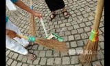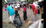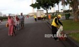 Sejumlah relawan yang tergabung dalam Tim Divisi Kebersihan membersihkan sampah di area acara reuni aksi 212, Sabtu (2/12). (FOTO : Republika/Silvy Dian Setiawan)
