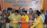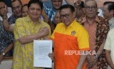 REPUBLIKA.CO.ID, JAKARTA -- Ketua Umum Kosgoro 1957 Agung Laksono menyerahkan surat keputusan dukungan kepada Airlangga Hartarto (kiri) untuk maju sebagai Calon Ketua Umum Partai Golkar di Kantor PPK Kosgoro 1957, Jakarta, Sabtu (2/12).