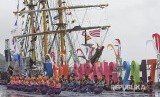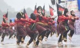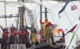 Penari menampilkan drama kolosal Laksamana Malahayati saat acara puncak Sail Sabang di Sabang, Aceh, Sabtu (2/11). Sail Sabang akan berlangsung hingga 5 Desember 2017 (FOTO : Zabur Karuru/Antara)