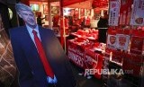 Cutboard bergambar pelatih Arsene Wenger dipajang penjual souvenir jelang laga bigmatch Arsenal vs Manchester United di Emirates Stadium, Ahad (3/12) dini hari. (FOTO : Neil Hall/EPA-EFE)