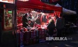 Penjual souvenir laga bigmatch Arsenal vs Manchester United di Emirates Stadium, Ahad (3/12) dini hari. (FOTO : Neil Hall/EPA-EFE)