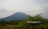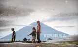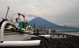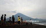 REPUBLIKA.CO.ID, KARANGASEM -- Berkurangnya Asap Sulfatara. Gunung Agung terlihat dari Pantai Jemeluk, Amed, Bali, Ahad (3/12).