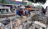 Rumah warga tersebut telah dibongkar oleh petugas pada Sabtu (2/12) karena berdiri diatas tanah PT KAI dan menutupi jalur resapan air.