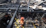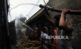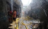 REPUBLIKA.CO.ID, JAKARTA -- Petugas pemadam kebakaran memadamkan api yang berasal dari pabrik kosmetik di Jalan Bandengan 1, Tambora, Jakarta Barat, Senin (4/12). Sebanyak 24 unit damkar dikerahkan untuk memadamkan api dan tidak ada korban jiwa pada peristiwa tersebut.
