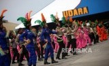 Prajurit Polairud menari tarian maumere saat peringatan HUT ke-67 Korps Polisi Air dan Udara (Korpolairud) Baharkam Polri di Mako Korpolairud Baharkam Polri, Pondok Cabe, Tangerang Selatan, Banten, Selasa (5/12). (FOTO : Republika/Mahmud Muhyidin)