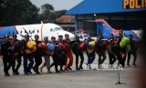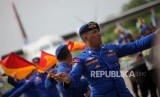 Prajurit Polairud berjalan seusai melakukan atraksi terjun payung saat peringatan HUT ke-67 Korps Polisi Air dan Udara (Korpolairud) Baharkam Polri di Mako Korpolairud Baharkam Polri, Pondok Cabe, Tangerang Selatan, Banten, Selasa (5/12). (FOTO : Republika/Mahmud Muhyidin)
