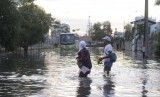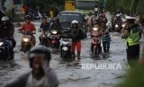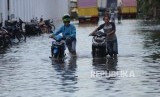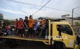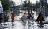 REPUBLIKA.CO.ID, JAKARTA -- Warga korban banjir naik perahu dadakan di kawasan Muara Baru, Penjaringan, Jakarta Utara, Selasa (05/12). Selasa Pagi Kawasan Muara Baru terendam banjir yang disebabkan oleh air laut pasang.