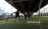Sejumlah anak-anak bermain bola di Taman Baca Kolong Jembatan Layang Ciputat, Tangerang Selatan, Banten, Selasa (5/12). (FOTO : Republika/Mahmud Muhyidin)