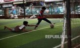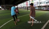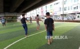 REPUBLIKA.CO.ID, TANGERANG SELATAN -- Sejumlah anak-anak bermain bola di Taman Baca Kolong Jembatan Layang Ciputat, Tangerang Selatan, Banten, Selasa (5/12).