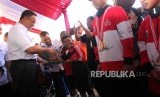 Gubernur DKI Jakarta Anies Baswedan menyerahkan sumbangan kepada sejumlah atlet disabilitas saat acara memperingati Hari Disabilitas Internasional Tingkat Provonsi DKI Jakarta 2017 di Panti Sosial Bina Grahita Belaian Kasih, Jalan Peta Utara, Jakarta Barat, Rabu (6/12). (FOTO : Republika/Mahmud Muhyidin)