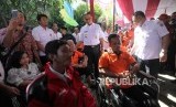Gubernur DKI Jakarta Anies Baswedan (tengah) didampingi Walikota Jakarta Barat Anas Effendi (kiri) berinteraksi dengan para disabilitas saat acara memperingati Hari Disabilitas Internasional Tingkat Provonsi DKI Jakarta 2017 di Panti Sosial Bina Grahita Belaian Kasih, Jalan Peta Utara, Jakarta Barat, Rabu (6/12). (FOTO : Republika/Mahmud Muhyidin)
